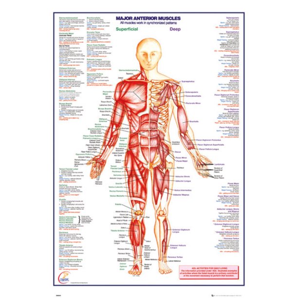 Human Body Major Anterior Muscles Reference Chart Cool Wall Decor Art Print Poster 24x36 Walmart Com