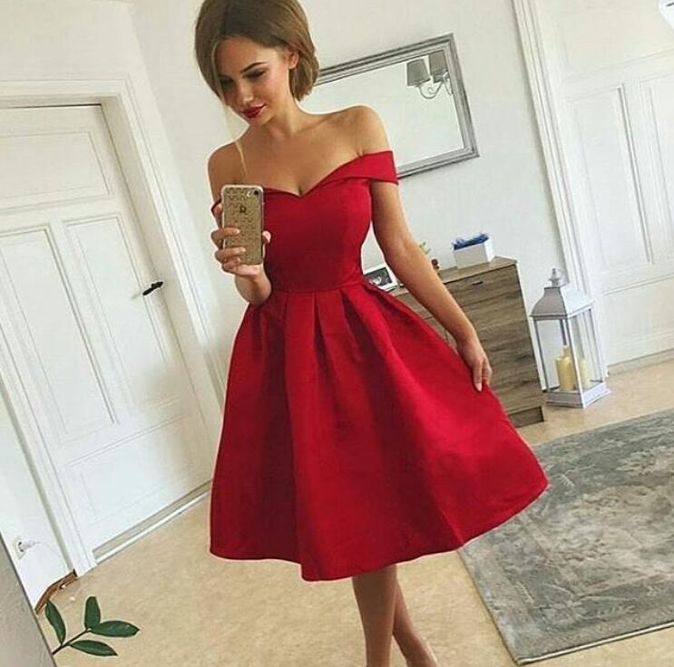 Sexy Off The Shoulder Red Informal Knee Length Prom Dresses Dinner Party Dresses On Luulla