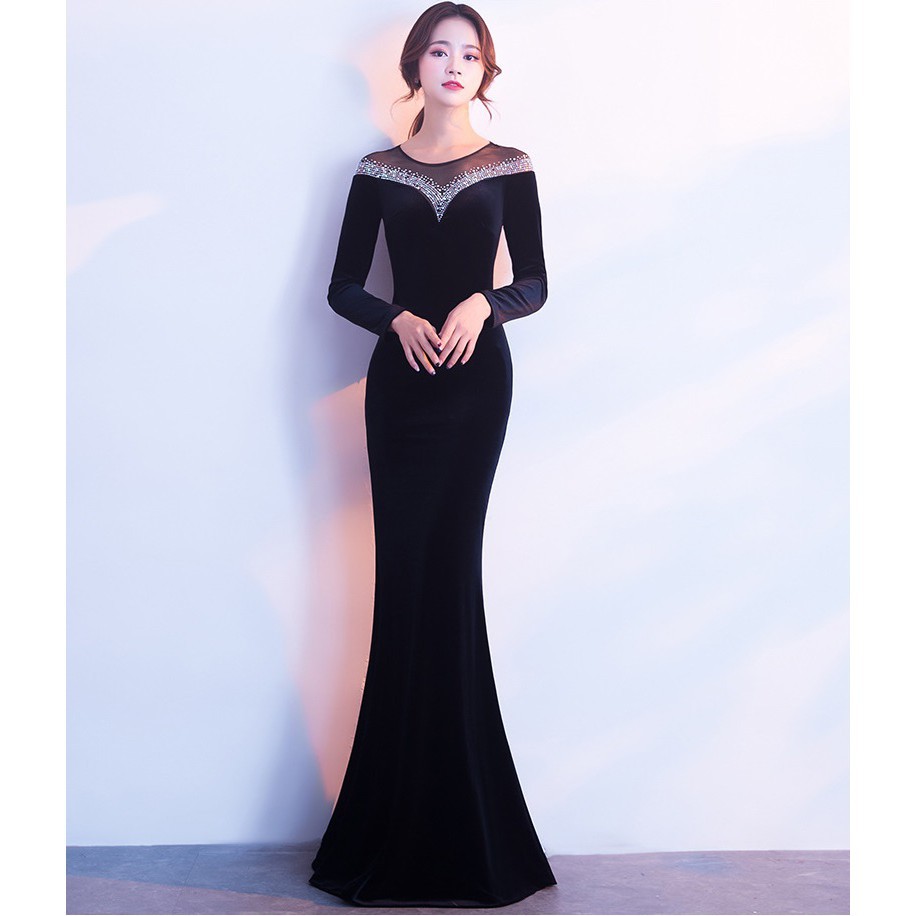 It S Yiiya Fashion Long Sleeve Panelled Bling Dinner Party Dresses Vestidos Simple O Neck Mermaid Evening Gowns H210 Evening Dresses Aliexpress